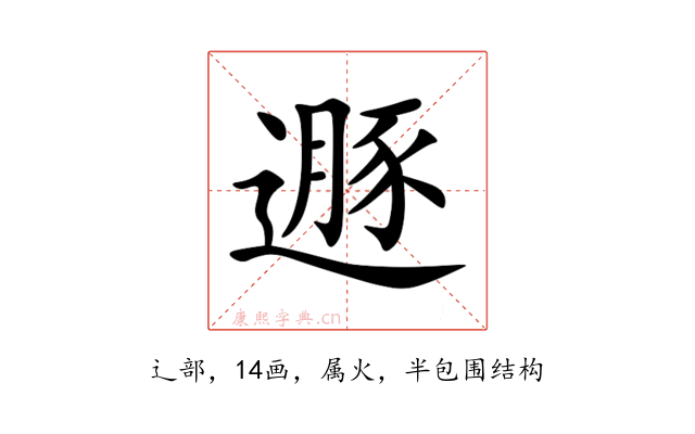〔遯〕字是半包围结构,可拆字为“辶、豚”。