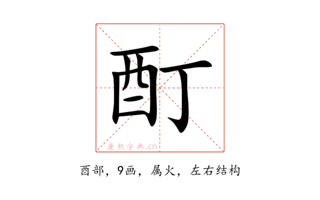 〔酊〕字是左右结构,可拆字为“酉、丁”,五行属火。