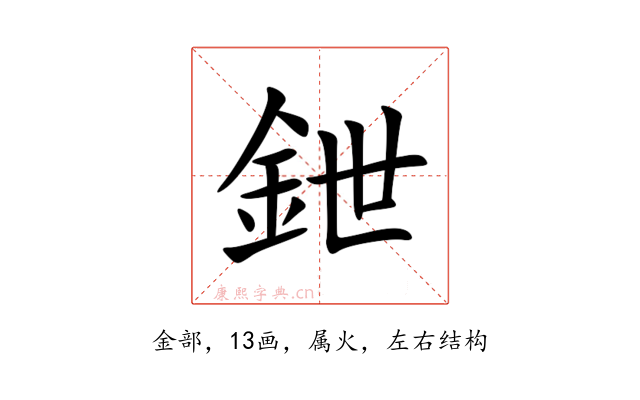 〔鉪〕字是左右结构,可拆字为“金、世”或“釒、世”。