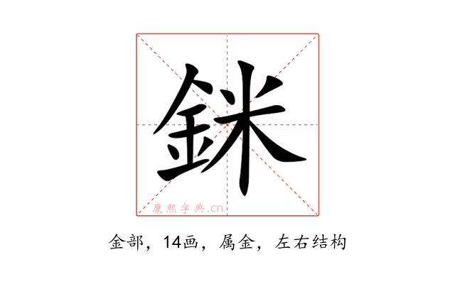 〔銤〕字是左右结构,可拆字为“金、米”或“釒、米”。
