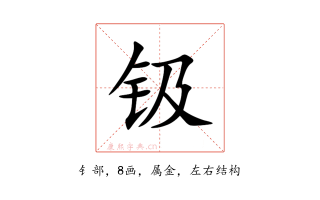 〔钑〕字是左右结构,可拆字为“钅、及”。