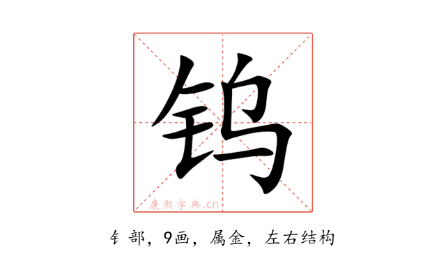 〔钨〕字是左右结构,可拆字为“钅、乌”,五行属金。