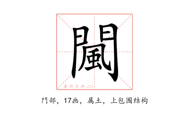 〔闏〕字是上包围结构,可拆字为“門、風”。