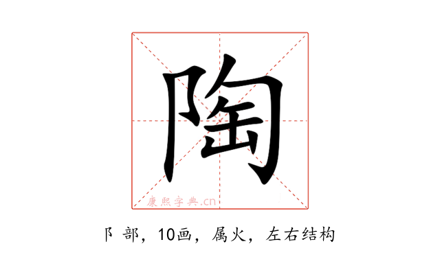 〔陶〕字是左右结构,可拆字为“阝、匋”或“、匋”,五行属火。