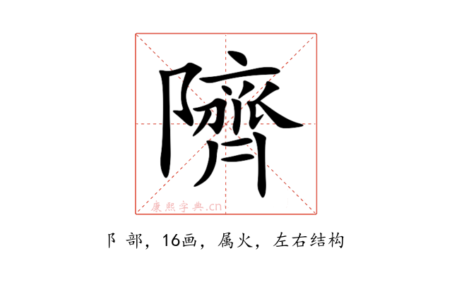 〔隮〕字是左右结构,可拆字为“阝、齊”或“⻖、齊”。
