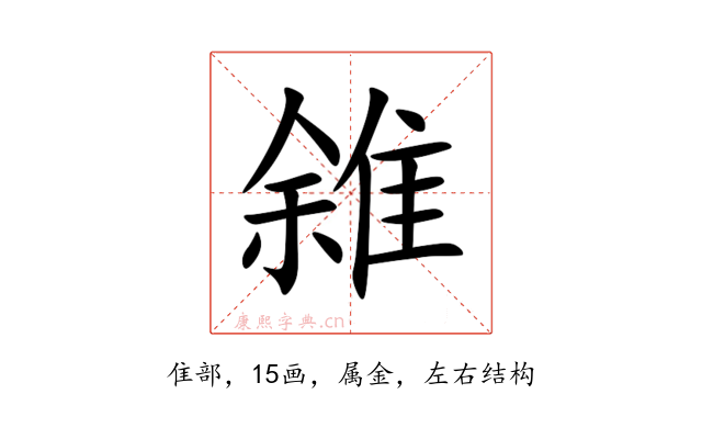 隹部 共15画 左右结构 U+96D3 CJK 基本汉字
