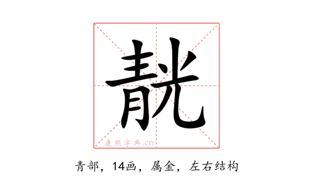 纠错〔靗〕字拼音是(chēng),部首是青部,总笔画是14画。