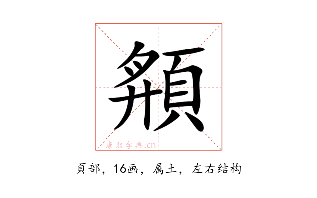 纠错〔頯〕字拼音是(kuí),部首是頁部,总笔画是16画。