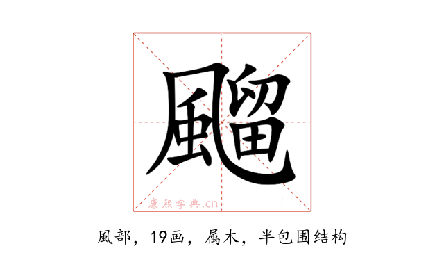 〔飀〕字是半包围结构,可拆字为“風、留”。