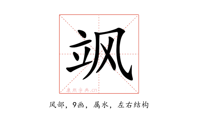 〔飒〕字是左右结构,可拆字为“立、风”,五行属水。