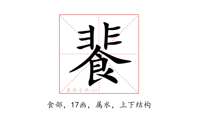 〔餥〕字是上下结构,可拆字为“非、食”。