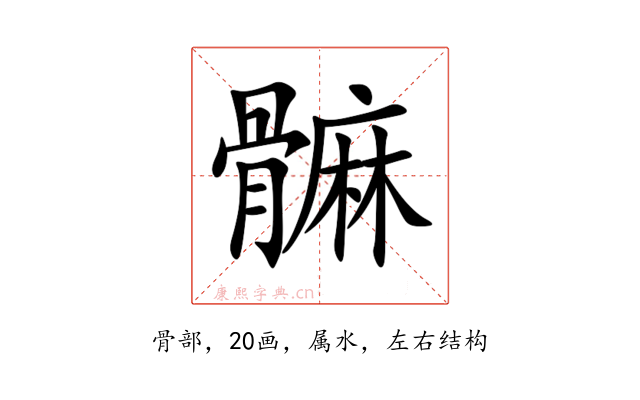 〔髍〕字是左右结构,可拆字为“骨、麻”。