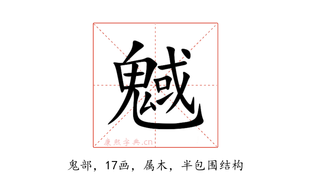 〔魊〕字是半包围结构,可拆字为“鬼、或”。