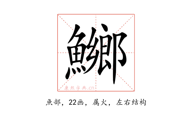 〔鱜〕字是左右结构,可拆字为“魚、鄉”。