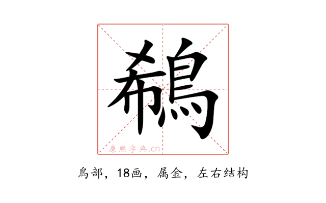 〔鵗〕字是左右结构,可拆字为“希、鳥”。