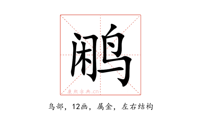 〔鹇〕字是左右结构,可拆字为“闲、鸟”,五行属金。