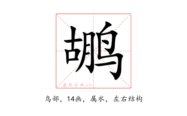 〔鹕〕字是左右结构,可拆字为“胡、鸟”,五行属水。