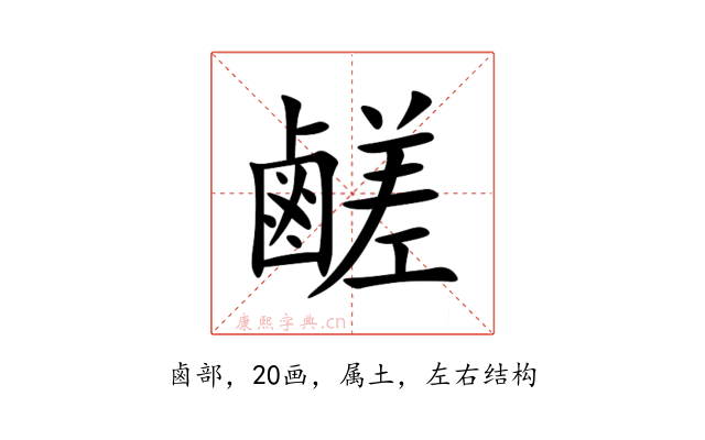 〔鹺〕字是左右结构,可拆字为“鹵、差”。