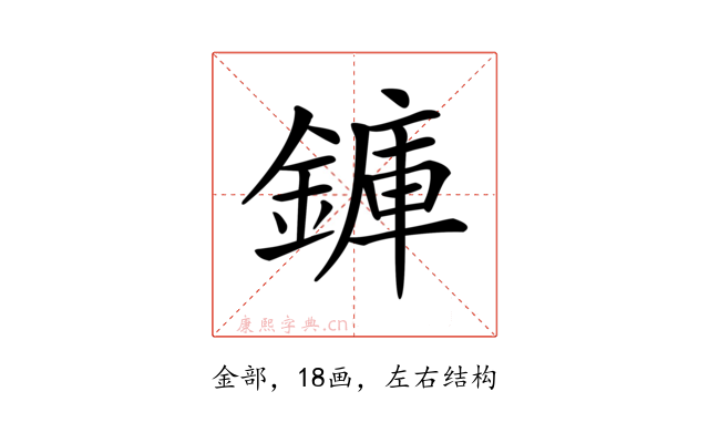 〔龲〕字是左右结构,可拆字为“金、庫”或“釒、庫”。