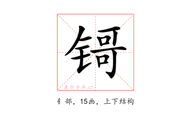 〔鿔〕字拼音是(gē),部首是钅部,总笔画是15画。