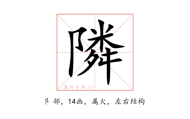 〔隣〕字是左右结构,可拆字为“阝、粦”或“⻖、粦”。