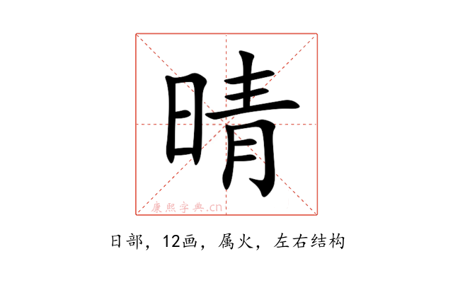 〔晴〕字是左右结构,可拆字为“日、青”,五行属火。